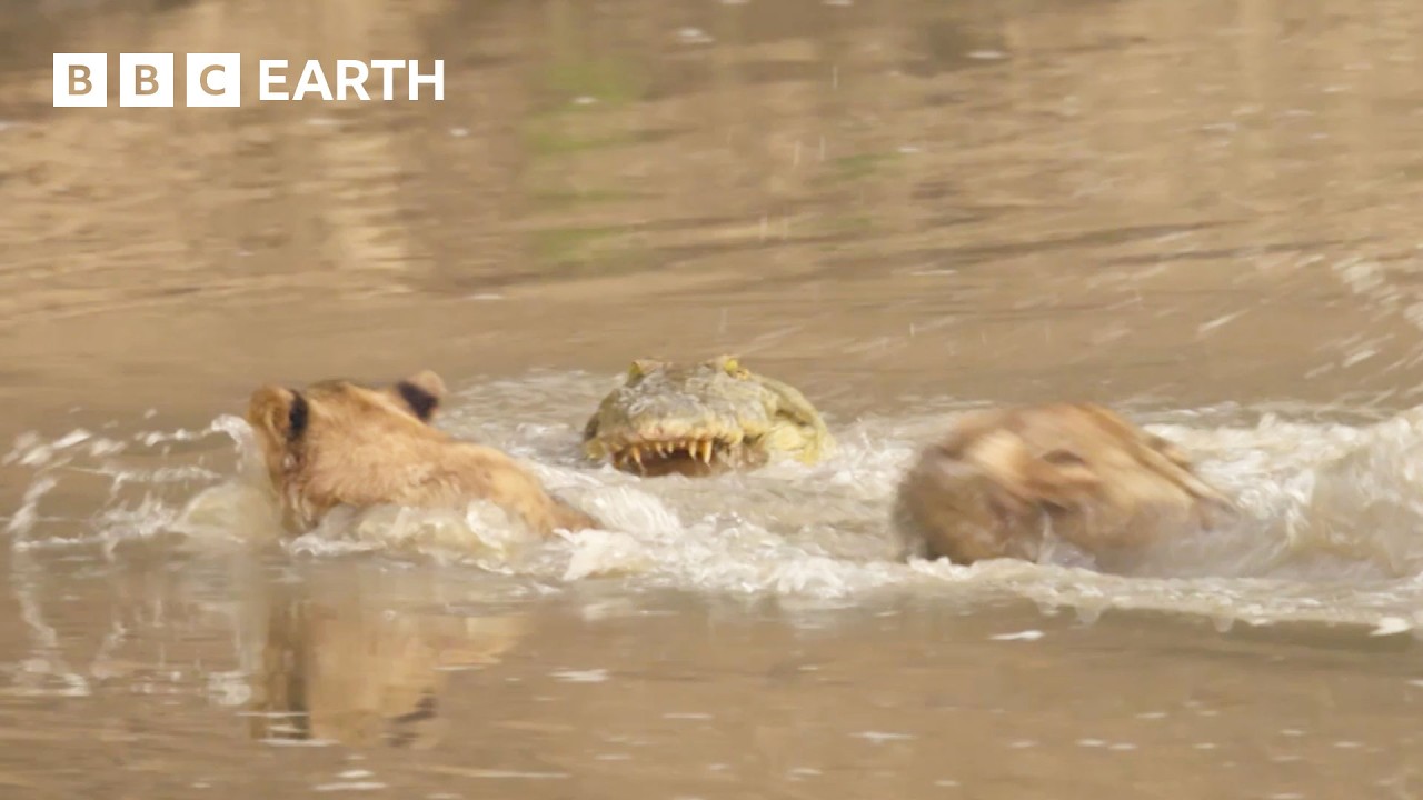 Lion Cubs Cross Croc-Infested Waters | Kingdom | BBC Earth